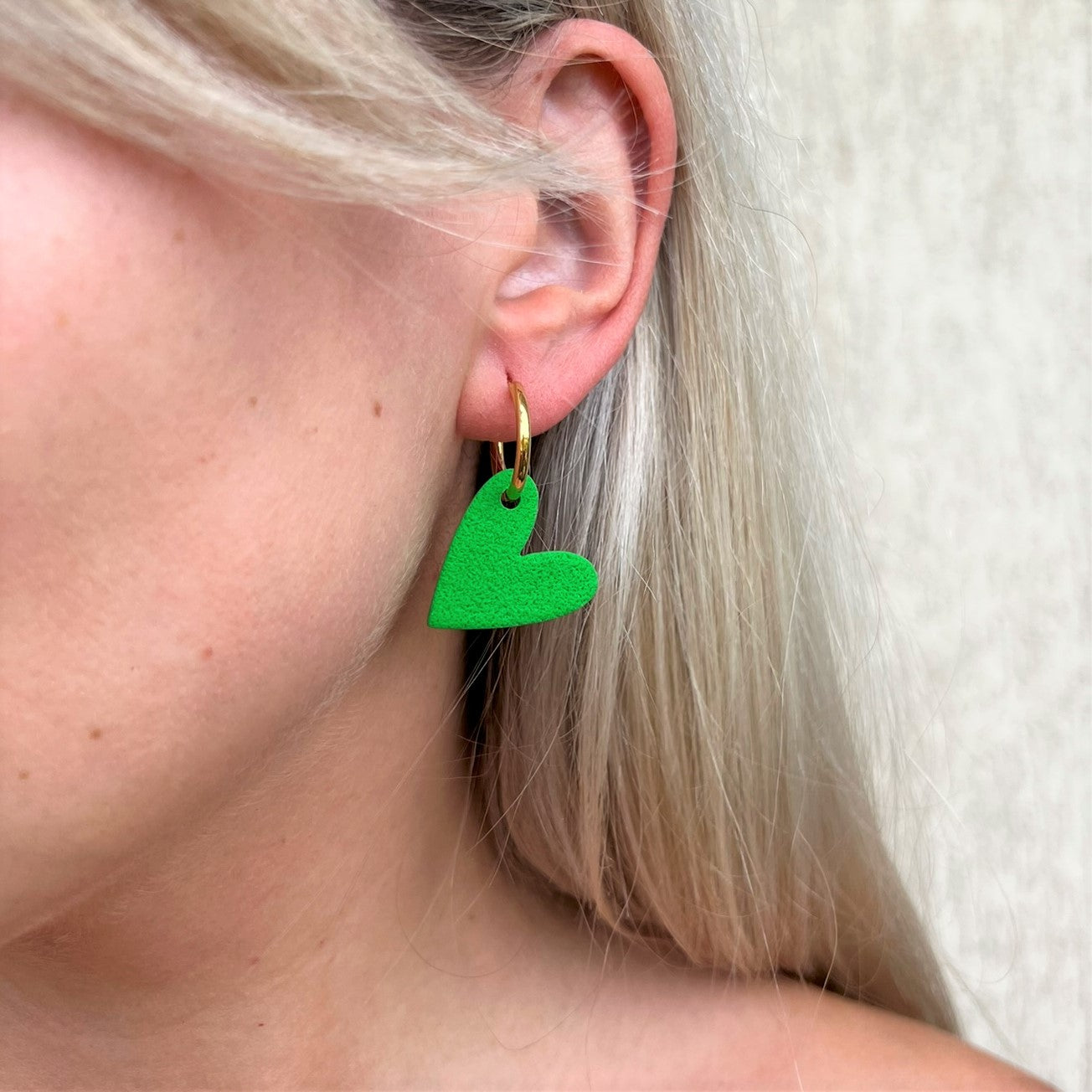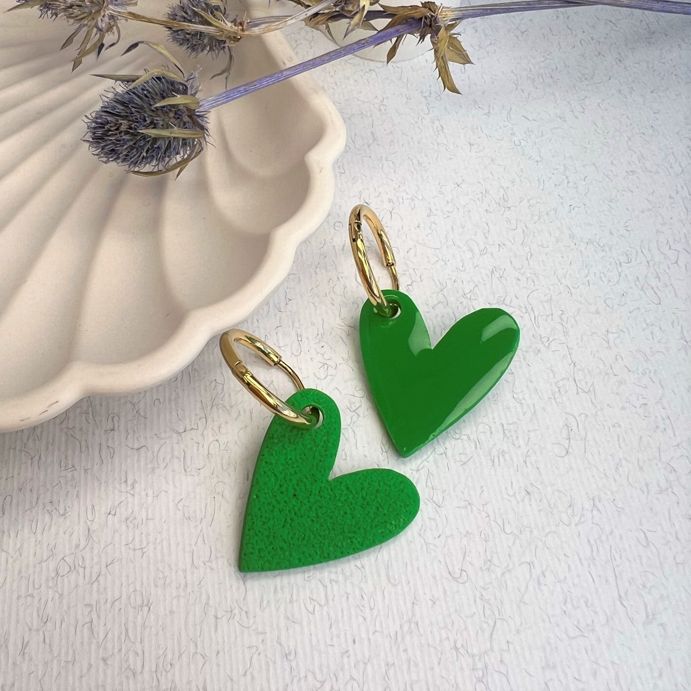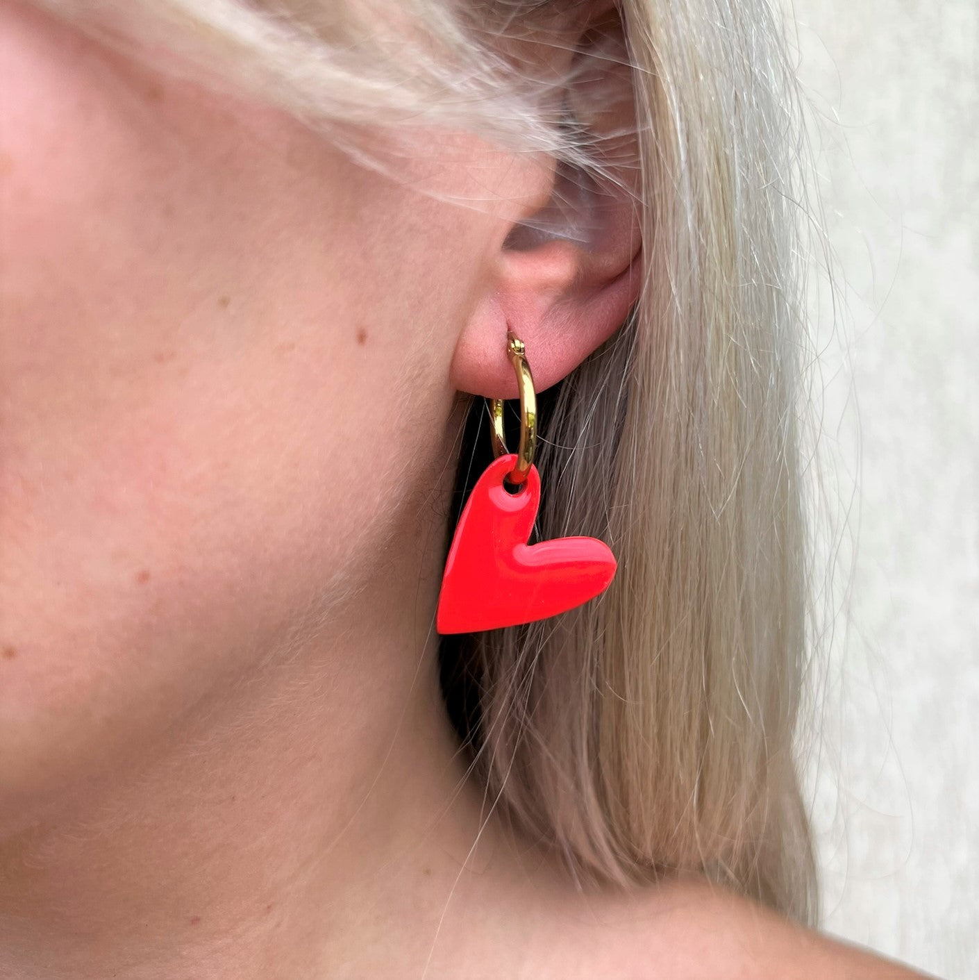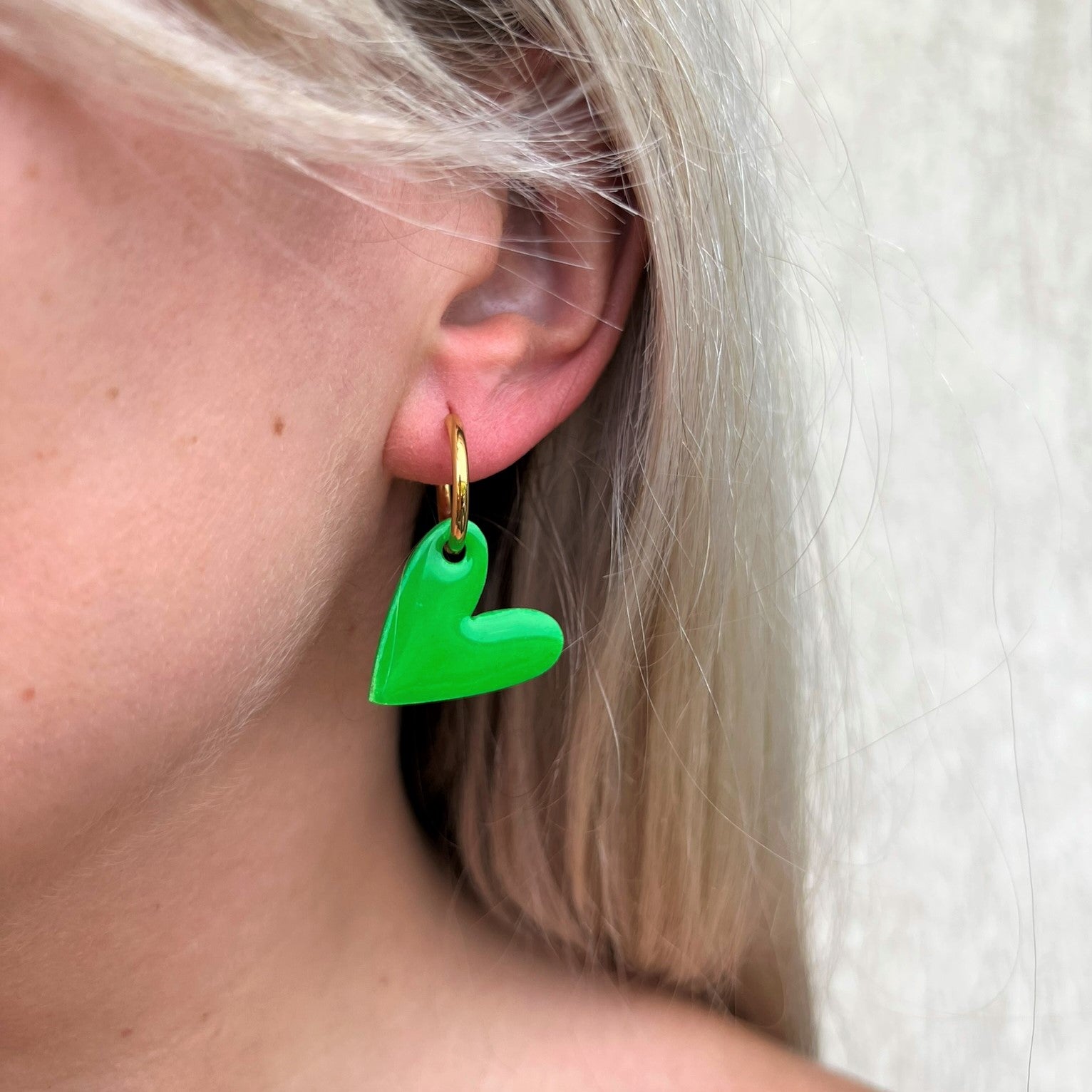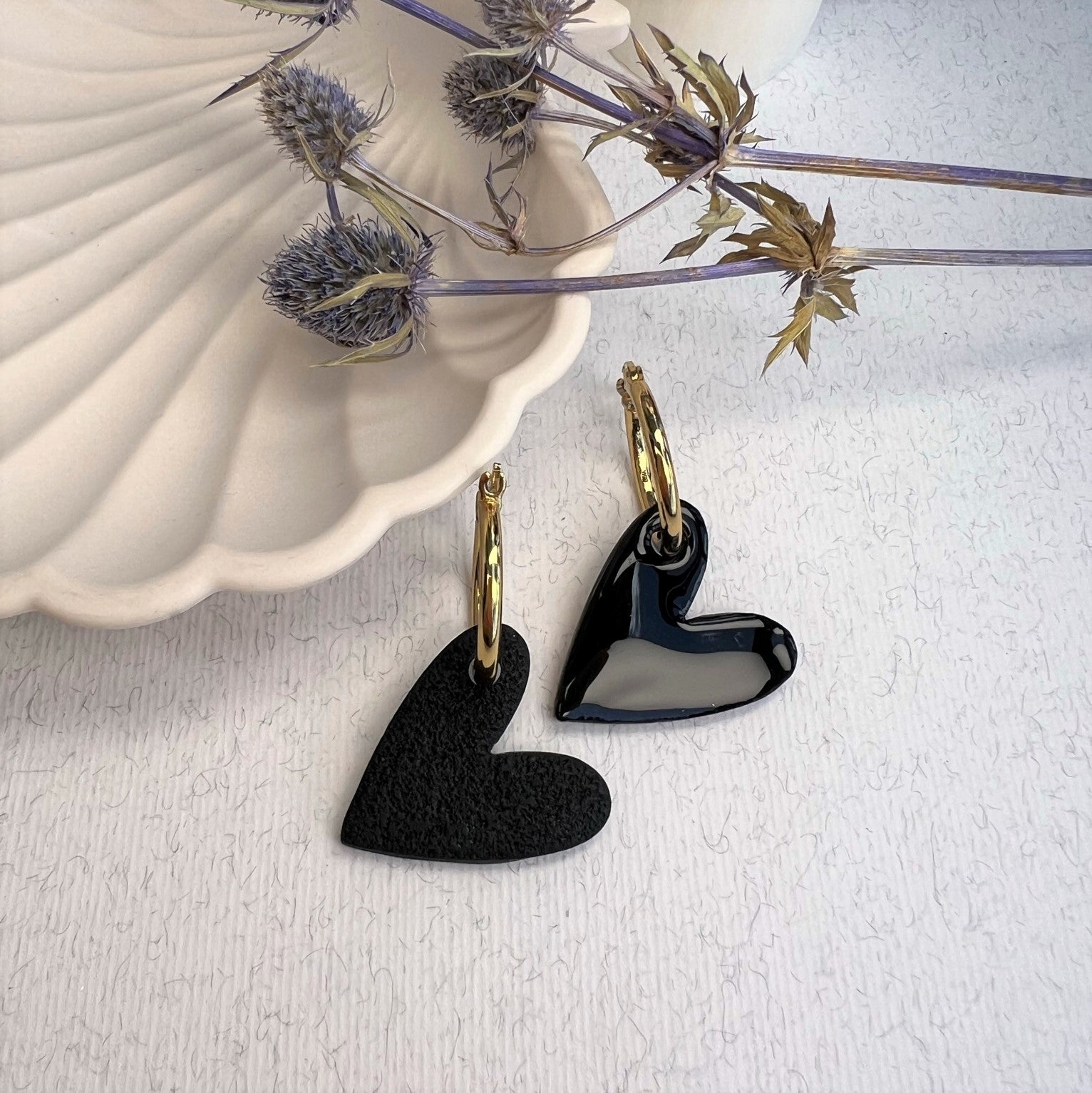 DITĖ auskarai gali būti nešiojami trimis būdais: tiesiog rinkutė (hoops), be širdelės papuošimo; matinė širdelė arba blizgi širdelė.
