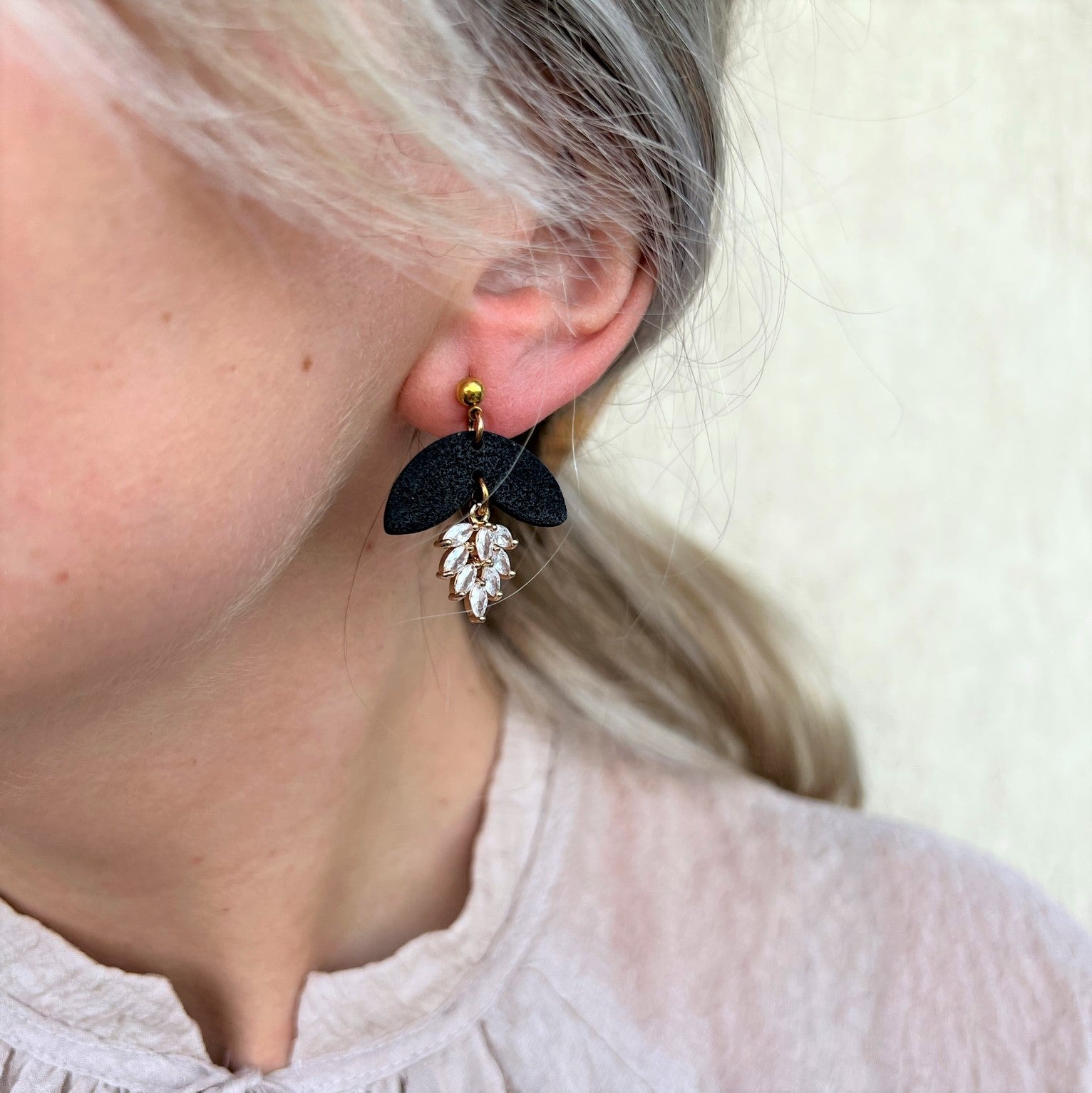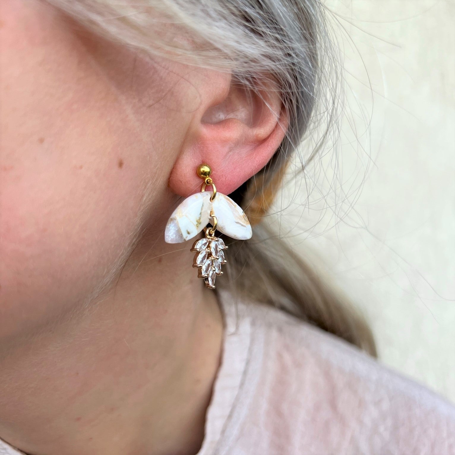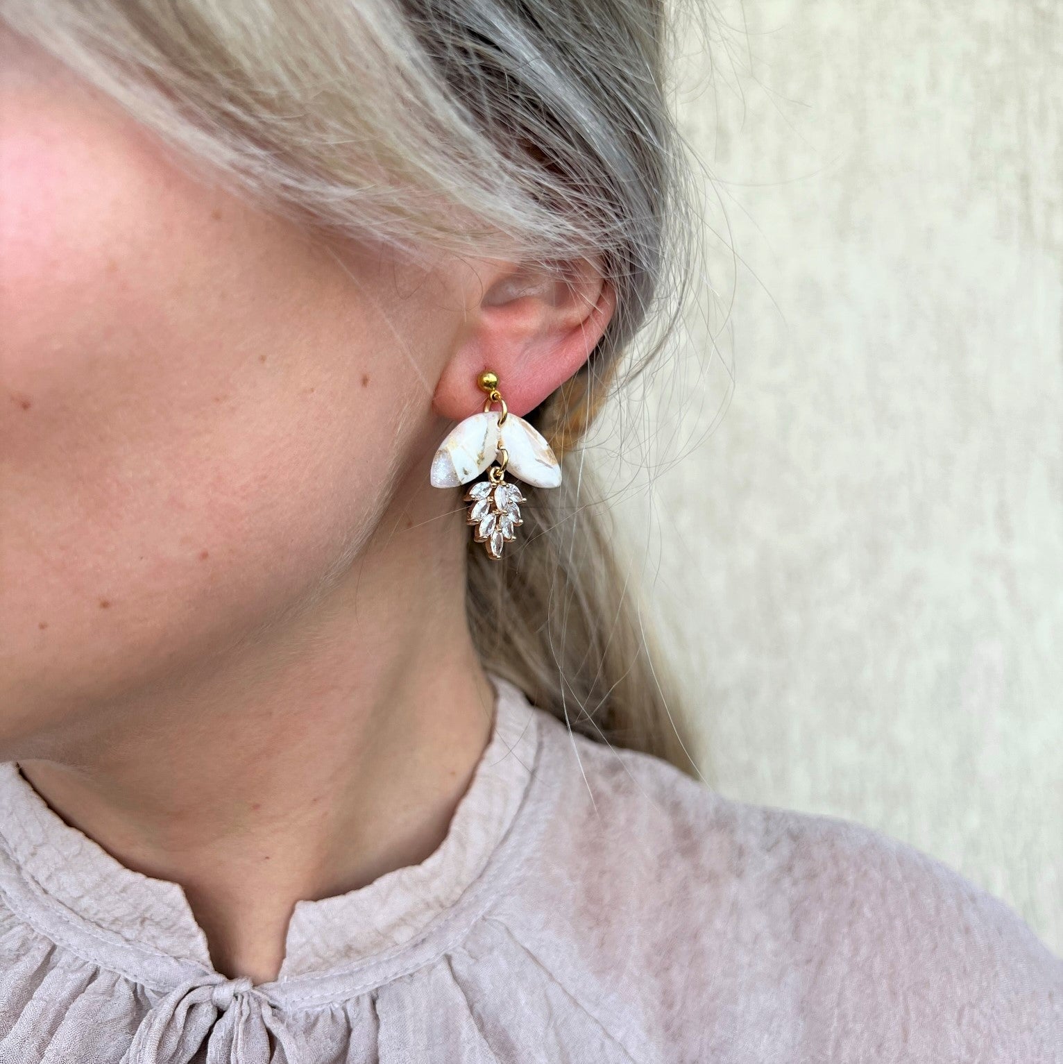 Elegantiški ir puošnūs, nuotakų pamėgti auskarai LIEPA. Subtiliai blizgantys, kabantys auskarai, puikiai išpildys Jūsų šventinį įvaizdį įvairioms progoms.