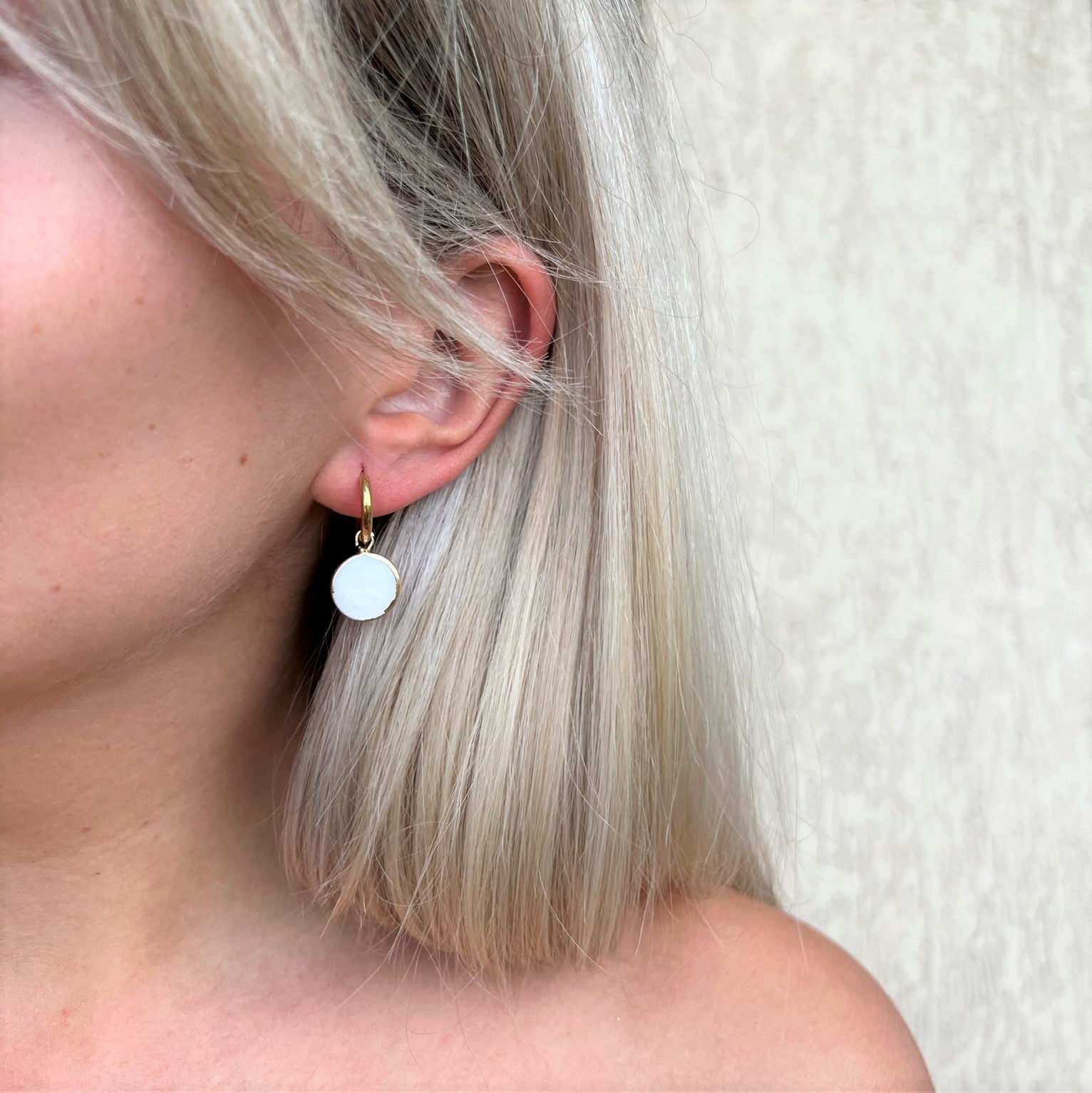 Visiška klasika - auskarai rinkutės su perlo masės pakabukais. Galima nešioti su pakabukais ir be.