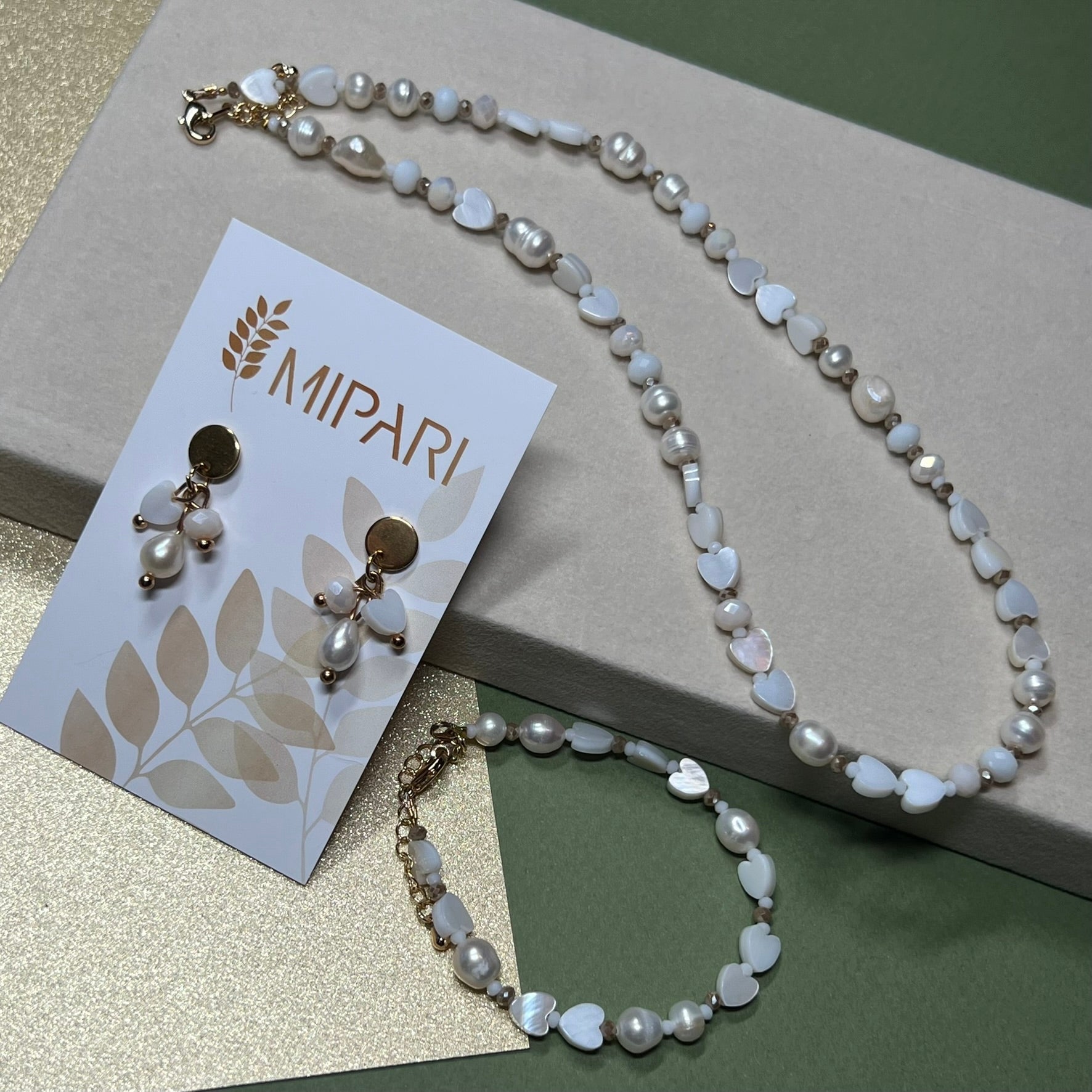 Visi Mipari papuošalai yra rankų darbo, todėl spalvos, formos ar dekoracijos gali neženkliai skirtis.