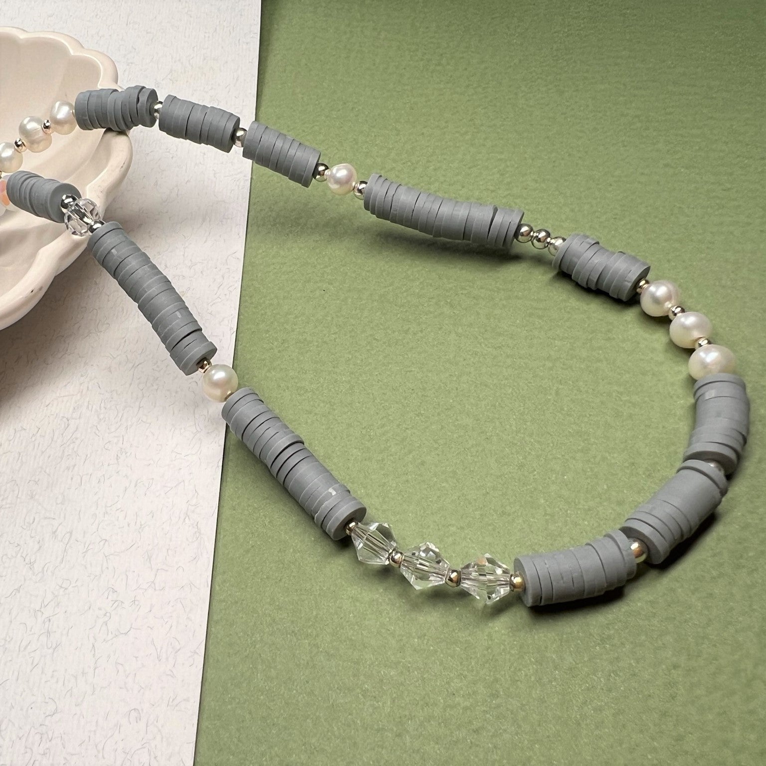 Švelnių spalvų polimerinio molio vėrinys, kuris tiks prie visko.