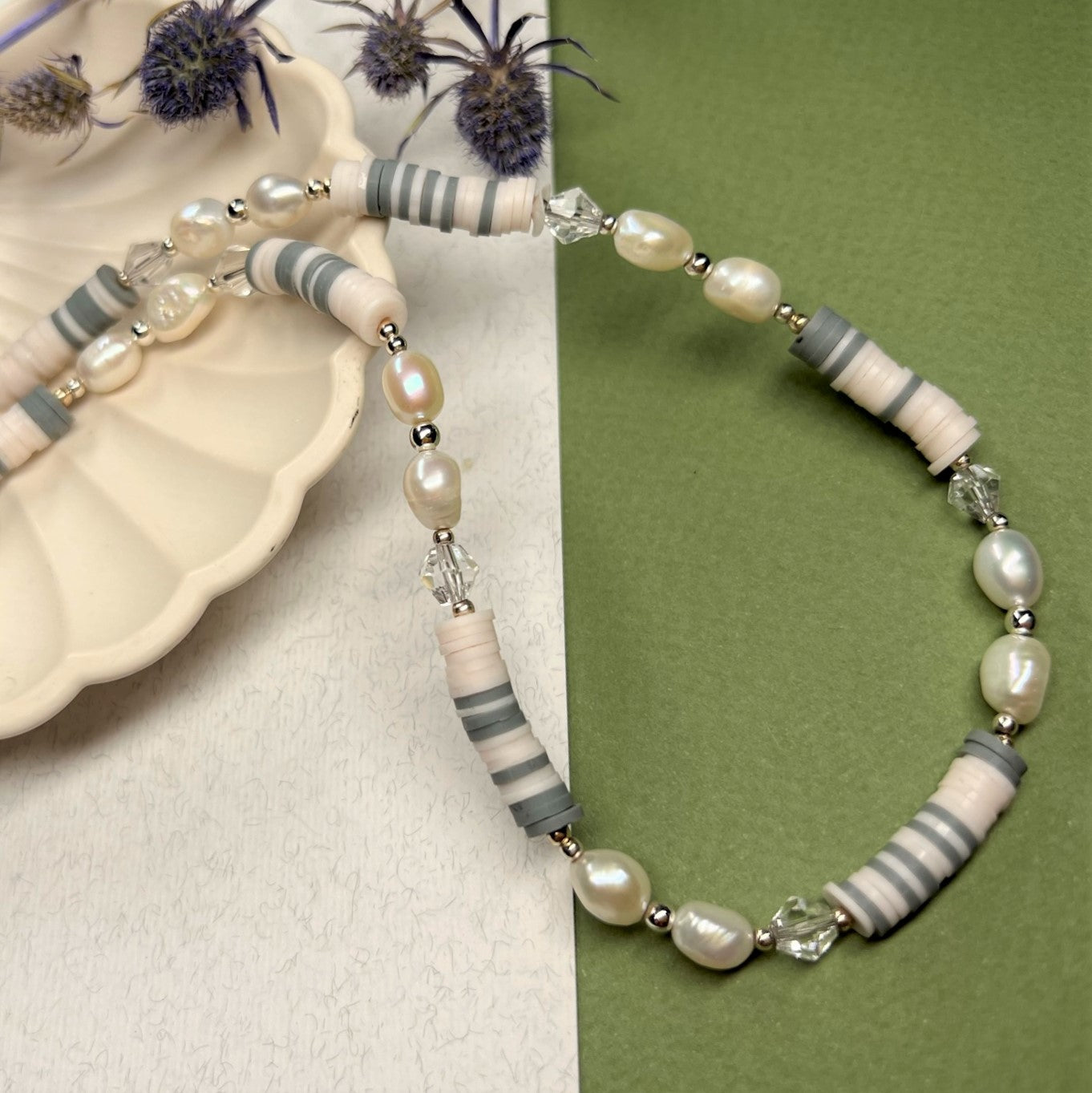 Švelnių spalvų polimerinio molio vėrinys, kuris tiks prie visko.